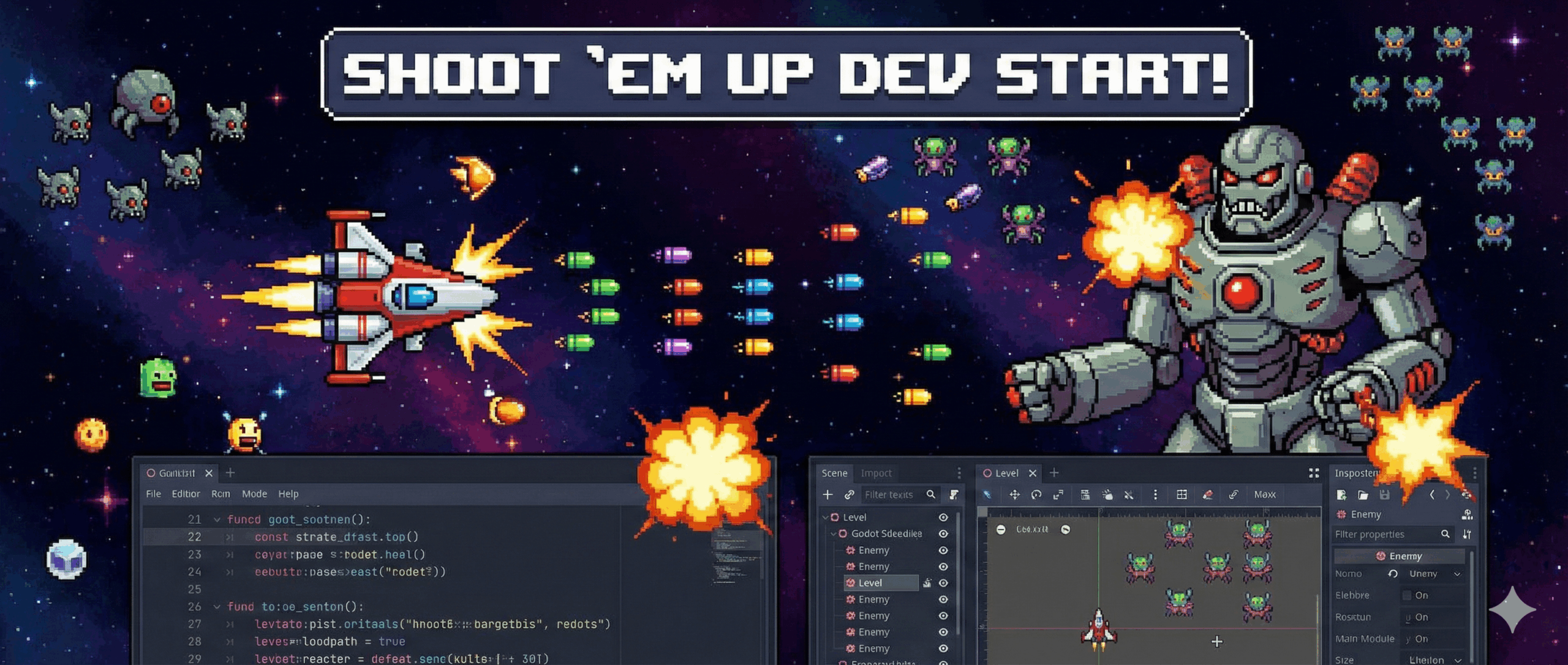 Godot 4のコンポーネント指向開発シリーズ、今回はレトロアーケードゲームやシューティングゲーム(STG)…